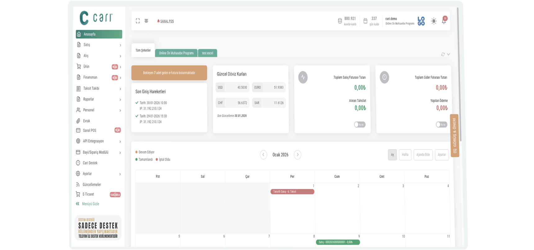 Cari® Sistem API Yardım Dökümanları
